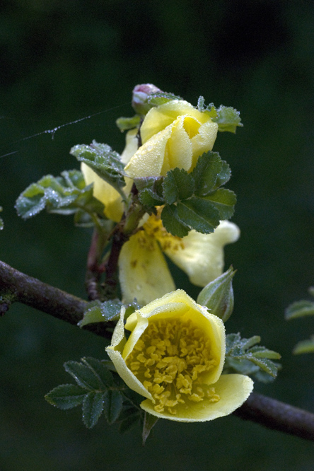 Quoiqu'il en soit, il s'agit d'un arbuste délicat, dont le feuillage est composé de très nombreuses petites folioles. Il a hérité de R. hugonis la forme et la couleur de ses fleurs, qui interviennent de très bonne heure au printemps.